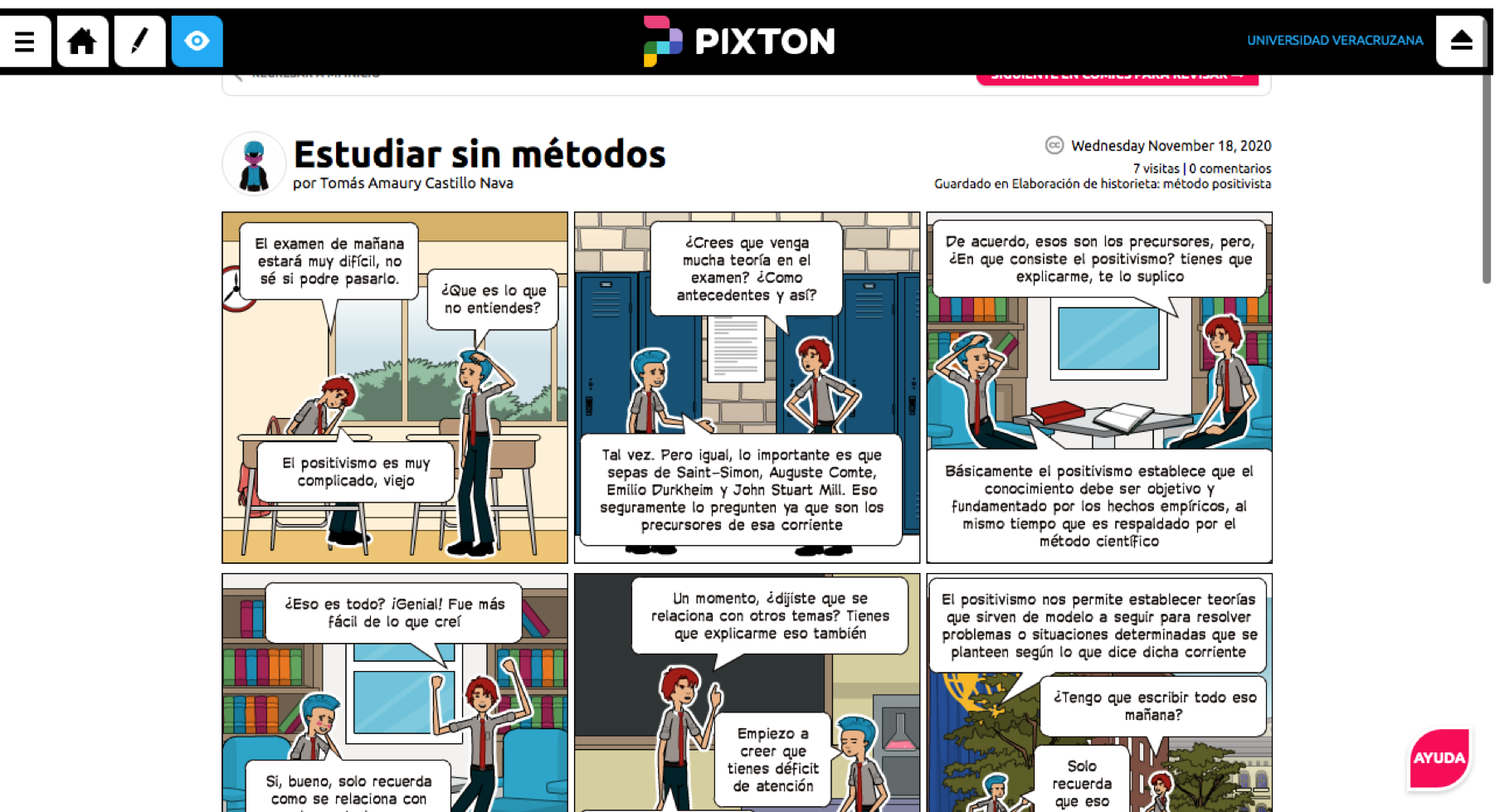 En el caso de la historieta, han empleado una plataforma que tengo contratada para la elaboración de ese tipo de materiales; lo que no impidió que les hablará de la forma en que se vincula con el examen parcial programado y el folleto, caminos que finalmente los llevan al mismo puerto: mostrar qué tanto manejan información sobre este enfoque, qué tan hábiles se muestran para recrear contenidos; cuando de esa información logran resignificar en el contexto de su aprendizaje.