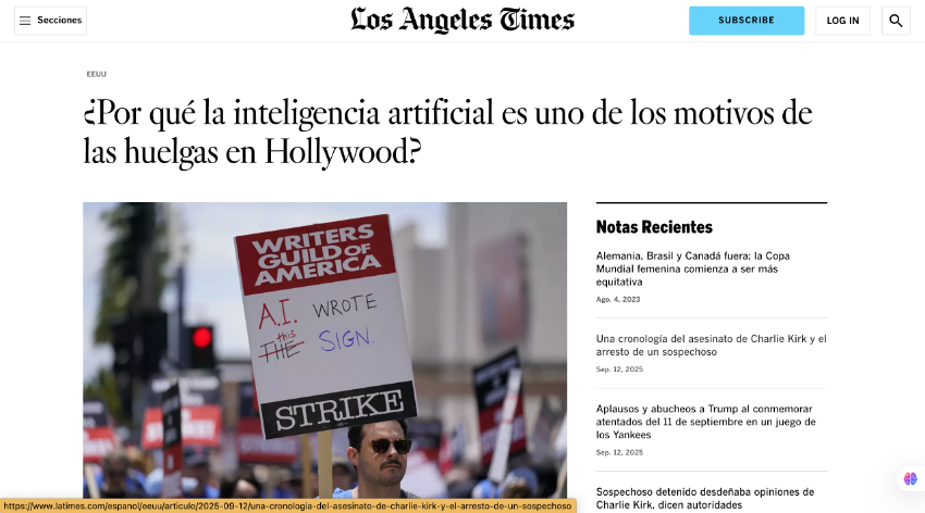 En este contexto, no perdamos de vista que hace poco el cine y la TV en EE. UU. se fueron a la huelga, entre cuyas demandas estaba la amenaza que ya representa la IA, al respecto del desarrollo del trabajo que hoy hacen los guionistas. Puesta la atención en estas profesiones amenazadas por la IA, es fácilmente distinguible que, en el ámbito periodístico, publicitario y de producción audiovisual, hay una amenaza, siendo como han sido desde siempre, ámbitos de desarrollo profesional donde el egresado de comunicación solía incorporarse.