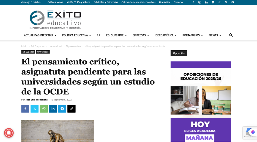 Poco después, se publicó un estudio en el que se analizaba el desarrollo el pensamiento crítico en estudiantes universitarios, cuyos resultados mostraban un deterioro significativo, ya que muy pocos participantes (45%) mostraban evidencias de un pensamiento crítico. En aquel estudio, se exponía la brecha entre calificaciones universitarias y habilidades «reales»; destacando que las habilidades genéricas como sería el pensamiento crítico, la solución de problemas son poco desarrolladas. Incluso se destaca que un porcentaje de los estudiantes, no sabe aplicar sus conocimientos disciplinares a problemas prácticos ligados a su profesión.