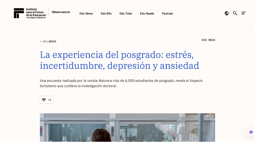 Fue poco antes de la pandemia cuando salió publicado un informe en el que participaron 6 mil estudiantes de posgrado. En él, los estudiantes se quejaban de las excesivas exigencias de trabajo que les demandaban así como las frustraciones que manifestaban al respecto tales niveles de exigencia (un 76% se quejaba de dedicar más de 40 hrs. a la semana a sus estudios, entrenamientos académicos extensos, exigencia para publicar artículos).