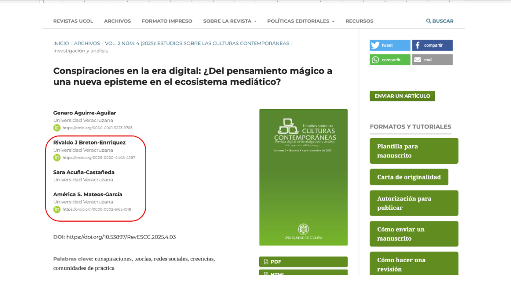 Así, hasta llegar a la investigación en la que me encuentro realizando el informe. Quizá la que más satisfacciones me ha dado, pues si bien en alguna anterior le pedimos a dos estudiantes que representarán a nuestro CA en un congreso en Argentina, en otras comenzamos con los pininos, para que algunos estudiantes fueran coautores, no fue hasta esta sobre Mitos, creencias y nuevas expresiones de fe en las mentalidades de América Latina. Un estudio desde los espacios digitales y que estamos cerrando cuando -mayormente- los jóvenes se han convencido que pueden firmar artículos científicos y ponencias junto a un servidor y algunos otros colegas.