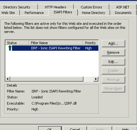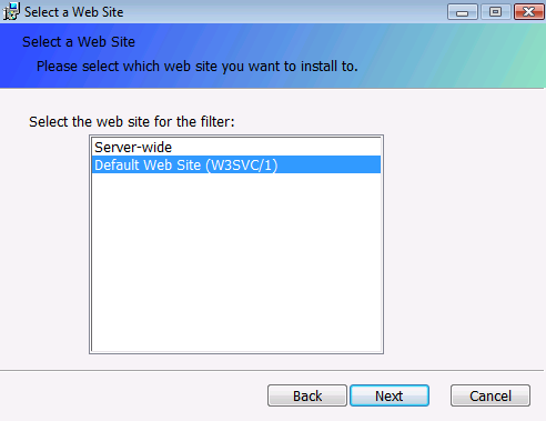 4. Select the web site you want IIRF filter work on (it is an IIRF.dll library file).