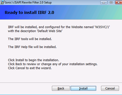 What this installer does is copy several files to your Program Files folder, give read permission to grupo IIS_WPG group y copy his IIRF.dll library as a filter on your IIS web site.