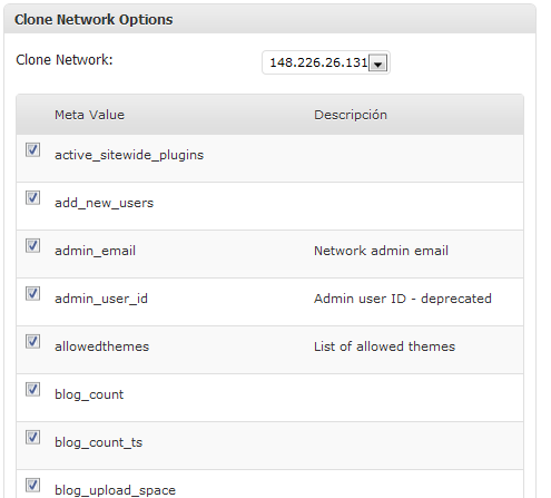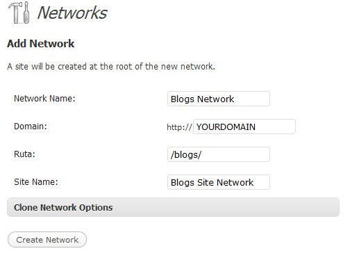 Click on the “Clone Network Options” link. I recommend you that select all options except siteurl. You can change those later on.
