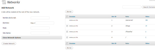 Click on Create Network and your are done. You have created another blog network with one new site. Click in the Site count link on the right to log into the new network.
