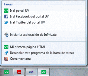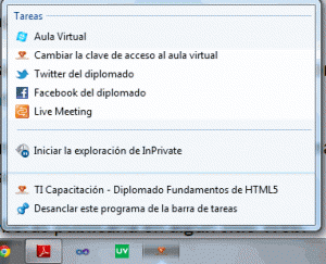 Aplicando lo aprendido en la sección “Sitios anclados”, debes anclar a tu barra de tareas el sitio http://ti-capacitacion.com/html5 que te proporcionará atajos a las páginas que estarás utilizando durante este entrenamiento.