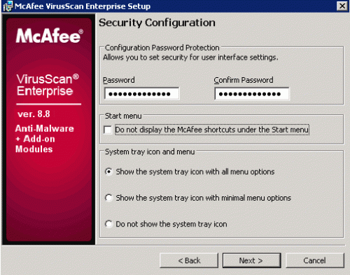 Si ya se tiene un producto de versión anterior y por lo que he alcanzado a leer, yo me recomiendo remover el mismo desde add or remove programs, reiniciar y entonces si, instalar esta última versión. Hay tantas llaves en el registro que el producto agrega, que puede ser que al poner una nueva versión encima de otra me encuentre con problemas en el futuro. En el caso especial de que no se pueda hacer esto, el instalador cuenta con la opción de hacer el upgrade además de que puede respetar las preferencias de configuración de la versión anterior. Pero de nuevo, lo recomendable es que si puedo, hay que desinstalar la versión anterior primero. Más info en McAfee VirusScan Enterprise 8.8 software Installation Guide.
