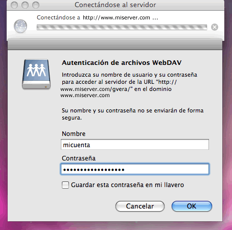 Paso 3. Introducir la dirección del servidor WebDAV y clic en Conectar.