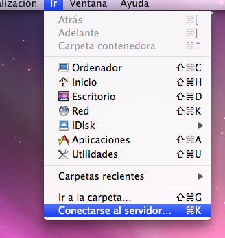 1. Dentro de Finder, ir al menú Go (Ir) y escoger Connect to Server (Conectar al servidor).