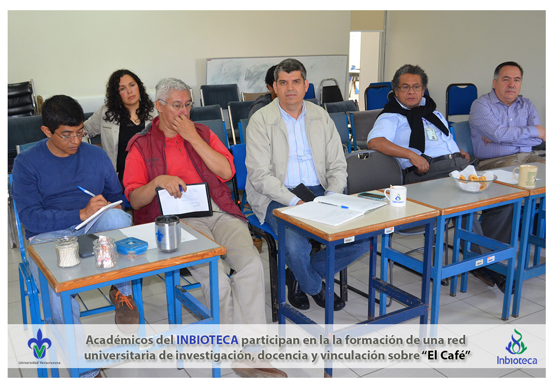2015-0506. Académicos del INBIOTECA participan en la formación de una red universitaria de investigación, docencia y vinculación sobre el café. Los problemas del café necesitan ser abordados con un enfoque multidisciplinario y de manera sistemática; una red universitaria que combine las capacidades que tiene la UV en este tema es un avance importante para enfrentar este reto de enormes proporciones. La reunión en particular tuvo como objetivos informar sobre las posibilidades de participación en una iniciativa de la Universidad Autónoma de Chapingo en Huatusco para la creación del CENACAFE (Centro Nacional de Investigación Innovación y Desarrollo Tecnológico del Café) y para darle seguimiento a la discusión que inició en el primer foro universitario “Explorando el café: retos y perspectivas” en noviembre de 2014.