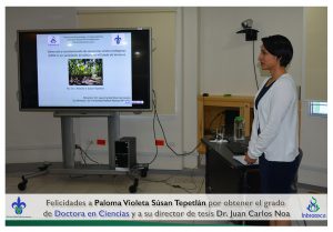 2017-0125. En el Aula de Usos Múltiples del INBIOTECA a las 09:00 horas, se realizó el examen de grado de Doctorado con la defensa pública de la tesis titulada: «Detección y Caracterización de Secuencias Virales Endógenas (EPRV) en Variedades de Plátano en el Estado de Veracruz». El INBIOTECA y la LGAC Biología Molecular y Fitopatología (BioMolFito) del Cuerpo Académico Consolidado UV-CA-234 «Biotecnología Aplicada a la Ecología y la Sanidad Vegetal» felicita a Paloma Violeta Súsan Tepetlán por obtener el grado de Doctor en Ciencias en Ecología y Biotecnología, a su director de tesis Dr. Juan Carlos Noa Carrazana, a su codirector de tesis Dr. Rafael Ramos Morales, a su comité y a todos los que contribuyeron en el trabajo realizado. En la investigación se hace mención de algunos aspectos sobre el cultivo de plátano, su importancia a nivel mundial, nacional y local, así como la caracterización de enfermedades que lo aquejan entre ellas el virus del rayado del plátano (BSV). Continuar leyendo…