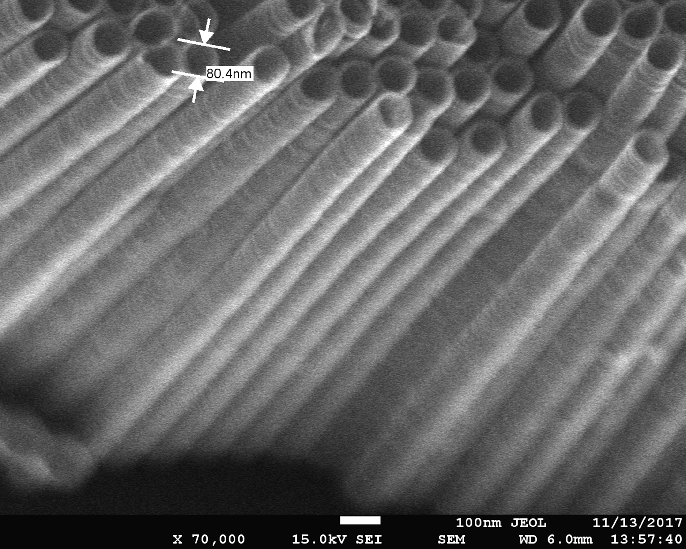 - Nanoporos,nanotubos y nanopasto de TiO2 mediante la técnica de oxidación anódica.