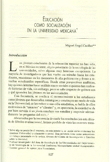 Casillas, M. A. (2000). Educación como socialización en la universidad mexicana. En D. Cazés, E. Ibarra y L. Porter (Coords.), Los actores de la universidad: ¿unidad en la diversidad? (pp. 157-165). México, CEIICH-UNAM.