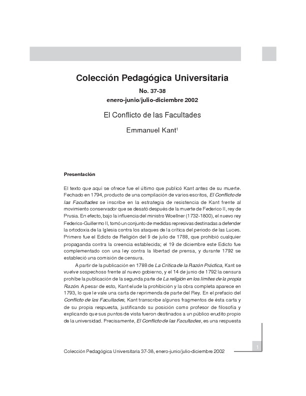 Kant, E. (Enero-junio/julio-diciembre, 2002). El conflicto de las facultades. (M. A. Casillas, Trad.). Colección Pedagógica Universitaria, (37-38), 1-22.