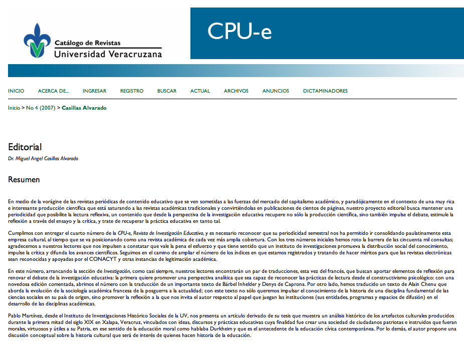 Casillas, M. A. (Enero-junio, 2007). Editorial de la Revista de Investigación Educativa No. 4. CPU-E, Revista de Investigación Educativa, (4).