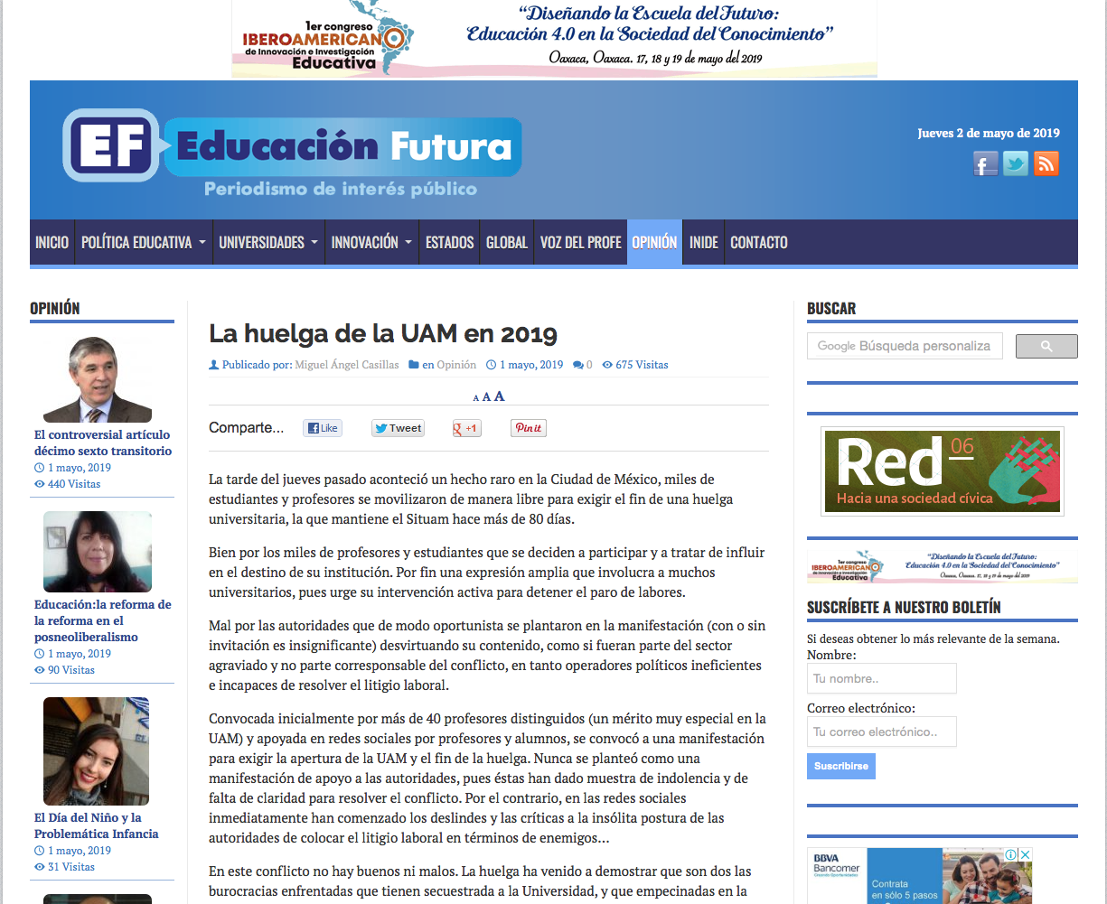 Casillas, M. A. (1 de mayo de 2019). La huelga de la UAM en 2019. Educación Futura. Recuperado de: http://www.educacionfutura.org/