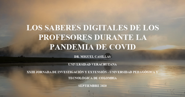 Casillas, M. A. (Septiembre, 2020). Los saberes digitales de los profesores durante la pandemia de COVID. Presentada en la XXIII Jornada de Investigación y Extensión de la Universidad Pedagógica y Tecnológica de Colombia.