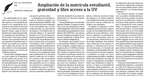 Casillas, M. (17 de mayo de 2021). Ampliación de la matrícula estudiantil, gratuidad y libre acceso a la UV. Educación Futura. Recuperado de: https://www.educacionfutura.org