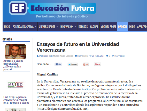 Casillas, M. (25 de julio de 2021). Ensayos de futuro en la Universidad Veracruzana. Educación Futura. Recuperado de: http://www.educacionfutura.org/