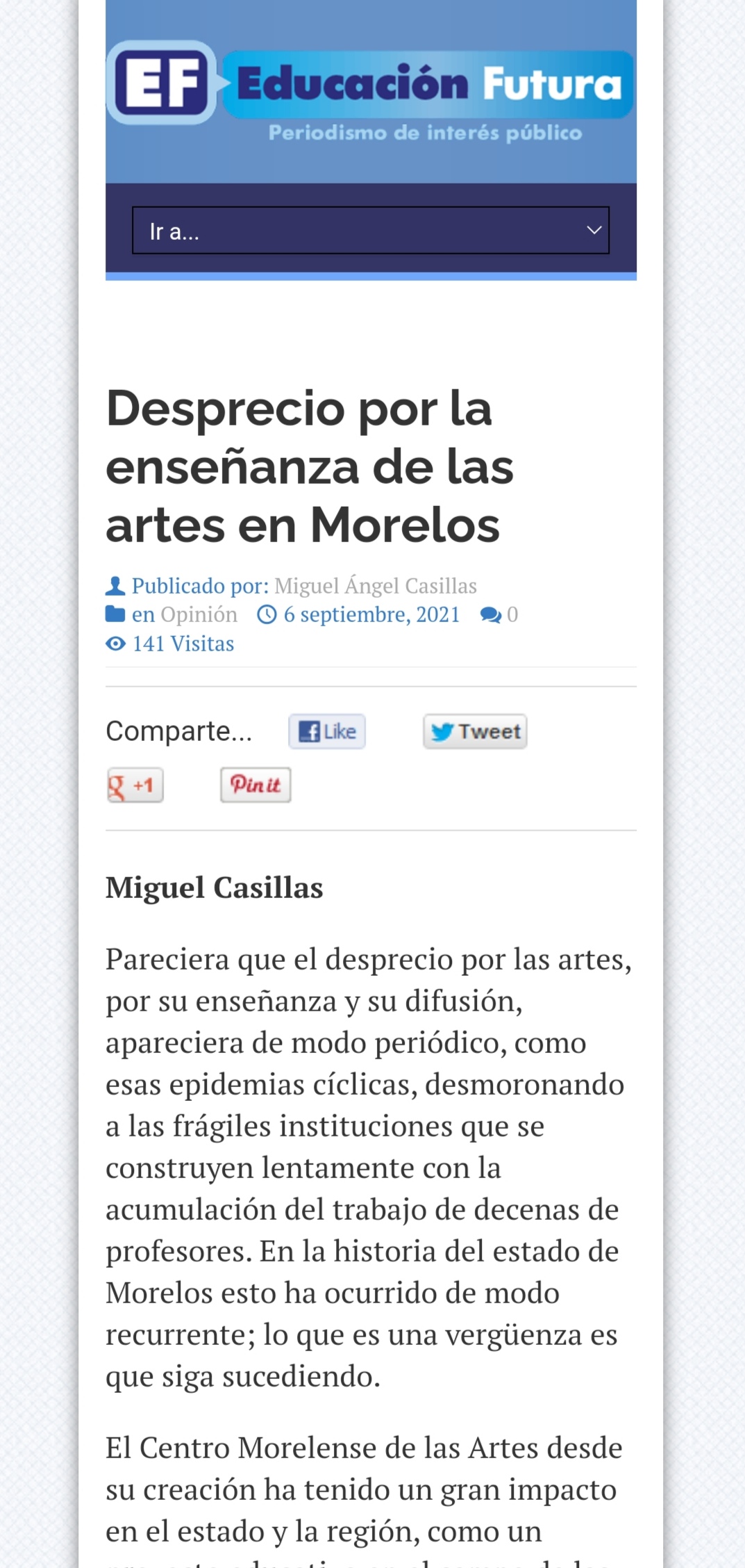- Casillas, M. (06 de septiembre de 2021). Desprecio por la enseñanza de las artes en Morelos. Educación Futura. Recuperado de: http://www.educacionfutura.org