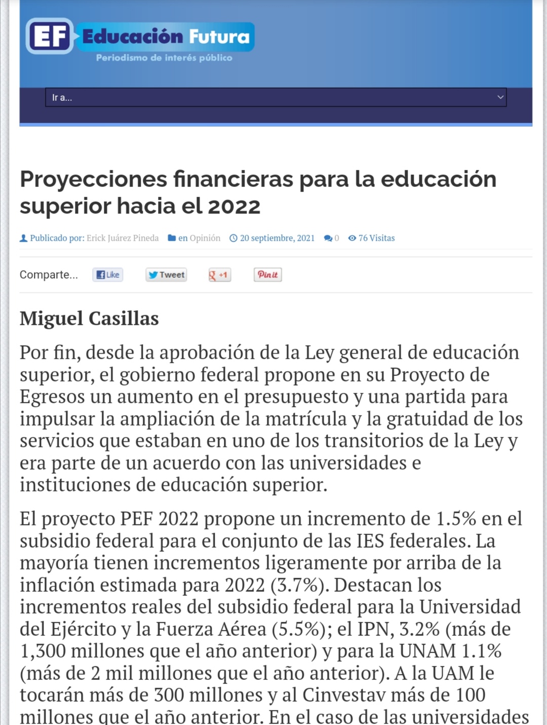 - Casillas, M. (20 de septiembre de 2021). Proyecciones financieras par la educación superior hacia el 2022. Educación Futura. Recuperado de: http://www.educacionfutura.org