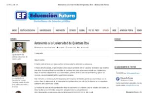 Casillas, M. (20 de marzo de 2022). Autonomía a la Universidad de Quintana Roo. Educación Futura. Recuperado de: http://www.educacionfutura.org/