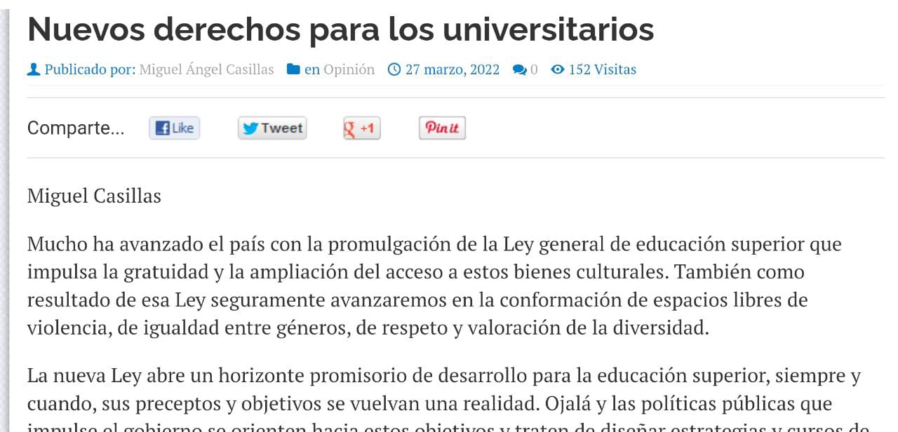 Casillas, M. (27 de marzo de 2022). Nuevos derechos para los universitarios. Espejo del Poder. Recuperado de: https://espejodelpoder.com/
