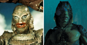 Las reseñas de El monstruo de la Laguna Negra, cinta dirigida por Jack Arnold -también intitulada La mujer y el monstruo-, decían que este anfibio era una especie intermedia entre la tierra y el agua, y hasta se arriesgaron a señalar que se trataba de un eslabón perdido hallado en la región del Amazonas -por cierto, igual que en la pieza de Del Toro.