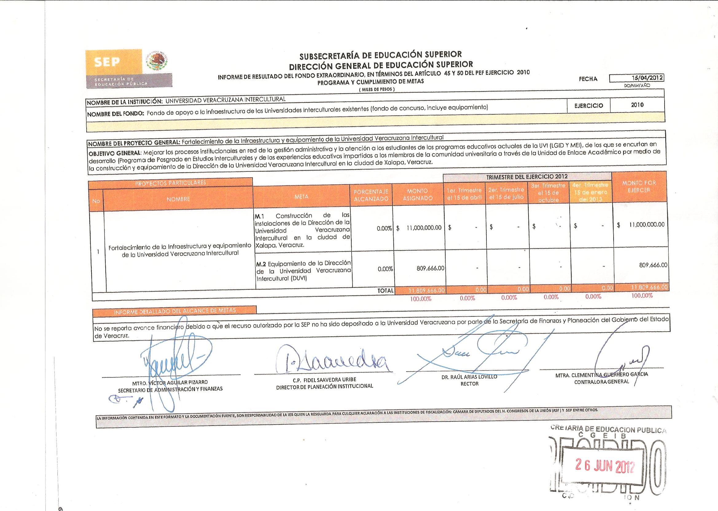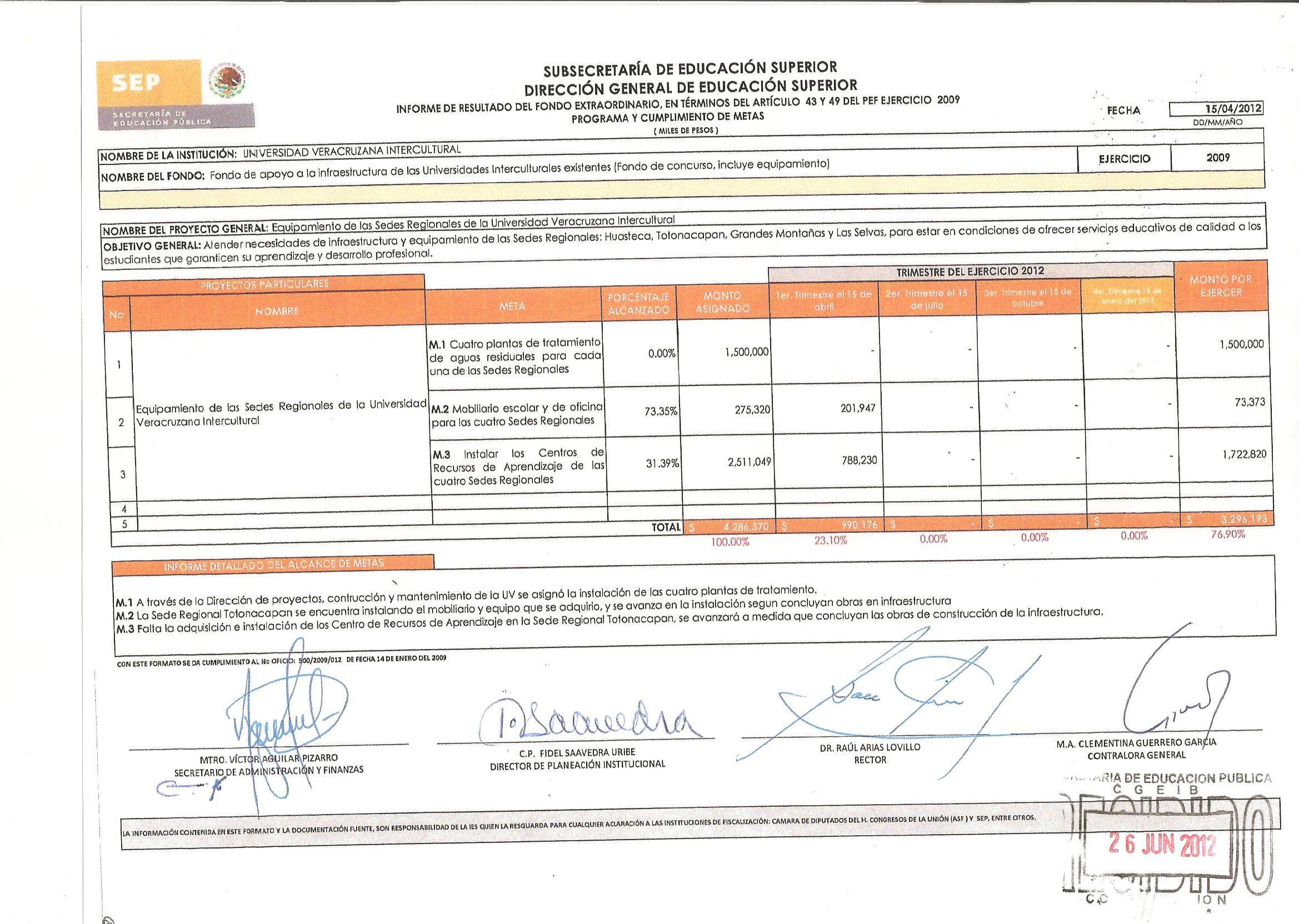 - Reportes Financieros Infraestructura 2009 – Reportes 2012 /1ro /2do /3er /4to