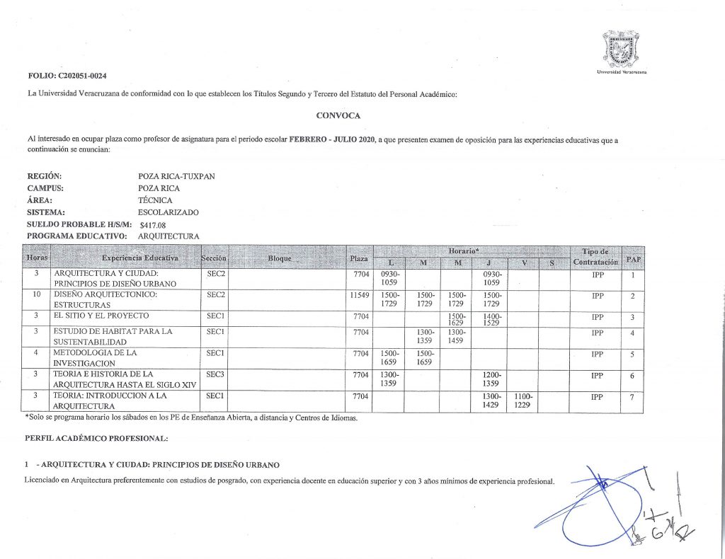 Convocatoria Profesor de Asignatura Feb – Jul 2020 Convocatoria para ocupar plaza como profesor de asignatura para el periodo Febrero – Julio 2020: Convocatoria_26_Nov_19
