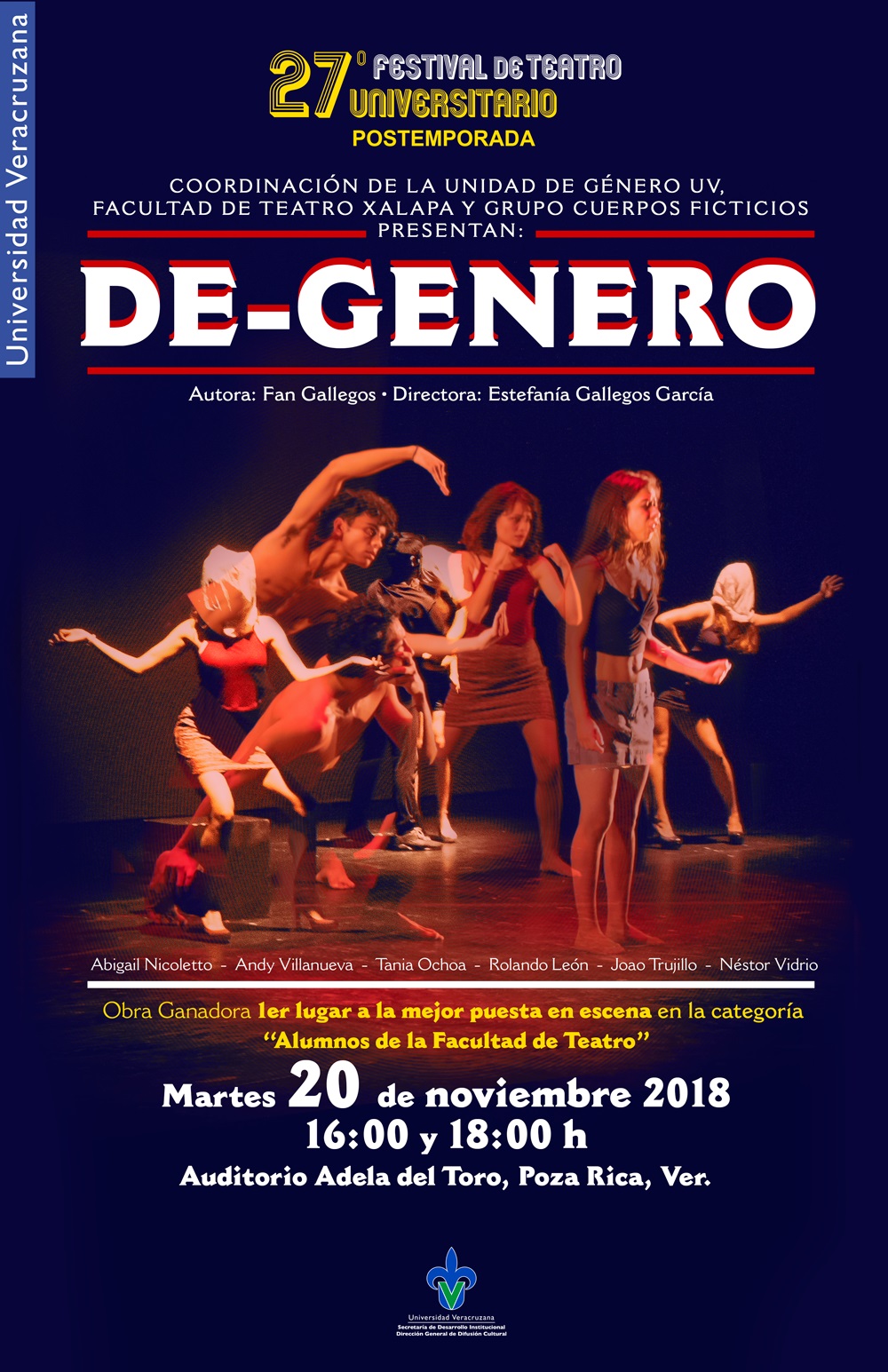 27° Festival de Teatro Universitario: DE-GENERO. Facultad de Ingeniería Mecánica y Eléctrica de la Universidad Veracruzana en el Campus Poza Rica en difusión invita a la comunidad universitaria al evento: