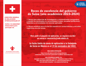 La fecha límite de envío de aplicación a la Embajada de Suiza en México es el 19 de noviembre del 2022.