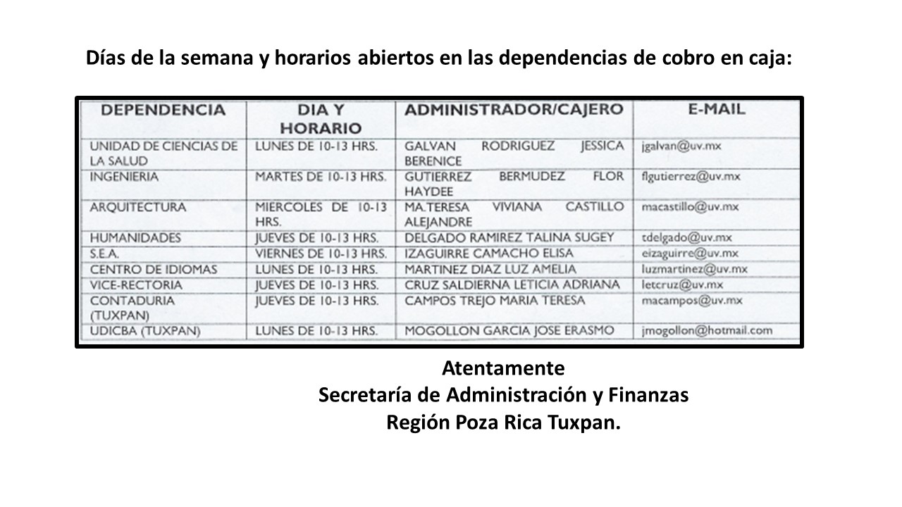 Circular: Servicios de pago en caja Región Poza Rica-Tuxpan Facultad de Ingeniería Mecánica Eléctrica Campus Poza Rica en difusión a su comunidad universitaria:
