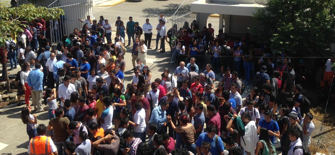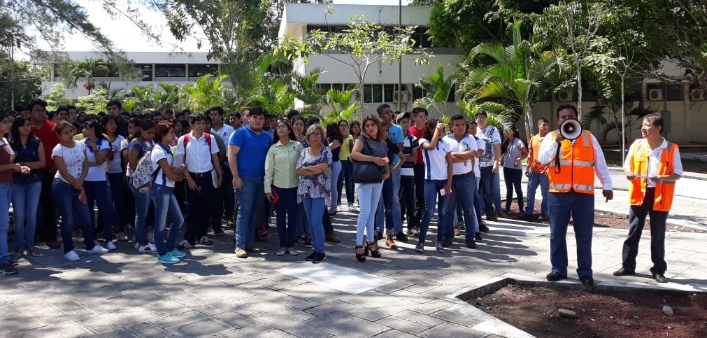 Estudiantes, académicos, autoridades, administrativos, trabajadores y toda persona que en ese momento se encontraba realizando alguna actividad dentro de las aulas, oficinas y otras espacios cerrados se vieron en la necesidad de abandonar en el menor tiempo posible las mismas y dirigirse a distintos puntos de reunión previamente ya destinados para este efecto por el personal del SUGIR de la unidad y equipos de brigadas de soporte para salvaguardar la integridad física como parte de una cultura de conciencia en la prevención, cuidado y seguridad de la vida en caso de desastres.