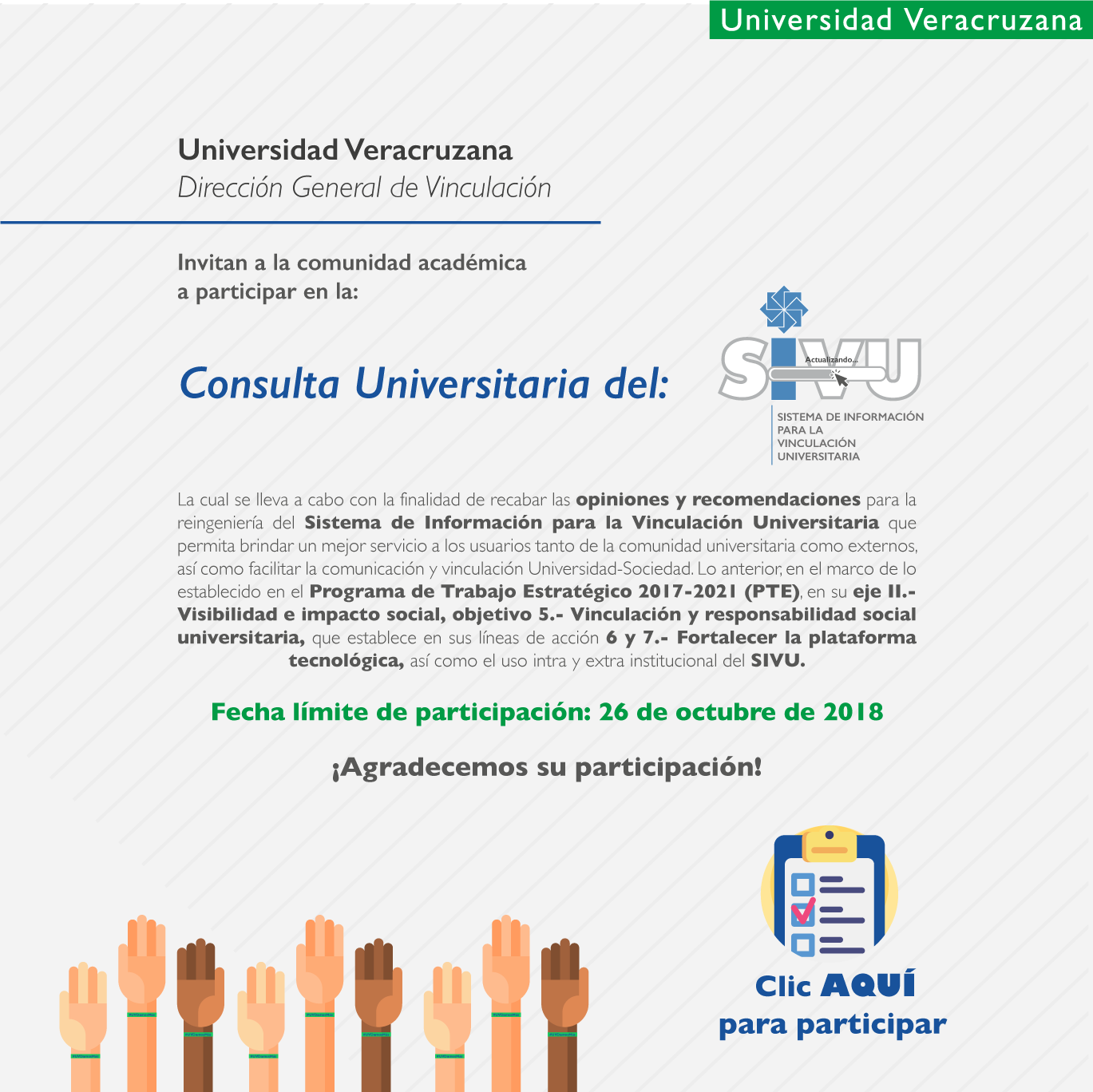 Consulta Universitaria SIVU Facultad de Ingeniería Mecánica y Eléctrica del Campus Poza Rica invita a su comunidad universitaria a participar en la Consulta Universitaria SIVU.