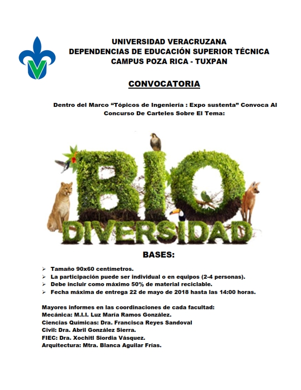 Facultad de Ingeniería Mecánica y Eléctrica en difusión a su comunidad universitaria invita a participar dentro del Marco: “Tópicos de Ingeniería: Expo Sustenta 2018” al concurso de carteles sobre el tema: Biodiversidad.