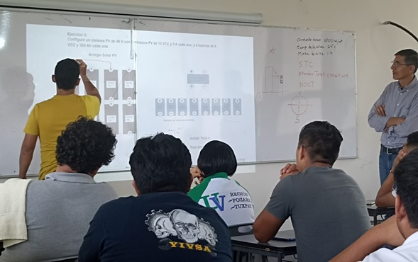 Los días del 04 al 08 de septiembre de 2023, en la Facultad de Ingeniería Mecánica y Eléctrica (FIME) de la Universidad Veracruzana, región Poza Rica- Tuxpan, realizó el taller Especializado en diseño de Proyectos Solares Fotovoltaicos Autónomos. El Curso-taller se llevó a cabo de manera teórica-práctica, participando 26 estudiantes de los Programas Educativos de Ingeniería Eléctrica, Ingeniería Mecánica Eléctrica e Ingeniería Mecánica y 7 académicos de la entidad.