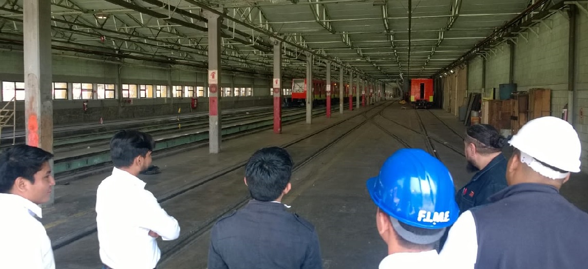 En el taller de mantenimiento conocieron las características principales de los trenes que cuentan con 9 vagones con una longitud total de 150 metros y se clasifica en trenes de rodadura neumática a los que corren con llantas y trenes de rodadura férrea a los que corren con llantas metálicas sobre un riel, asimismo conocieron la importancia de los carros motrices, en los cuales cada uno está equipado con cuatro motores de tracción de corriente continua tipo serie y los diferenciales encargados de transmitir el torque del motor de tracción al eje de las ruedas.