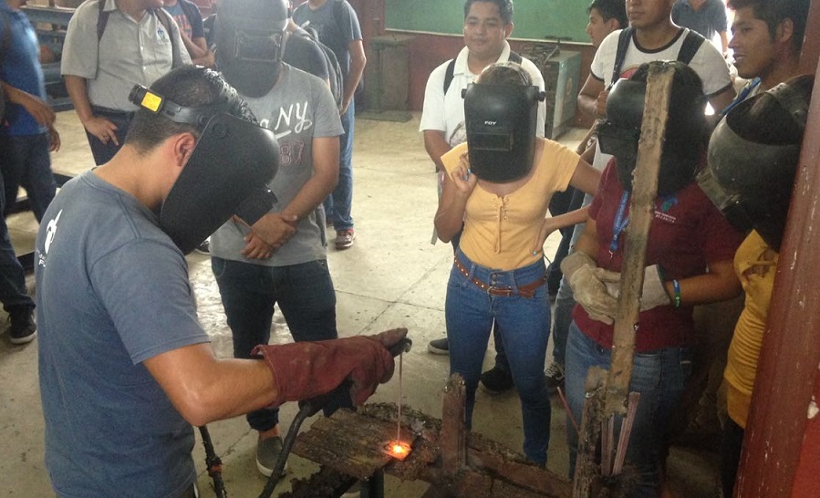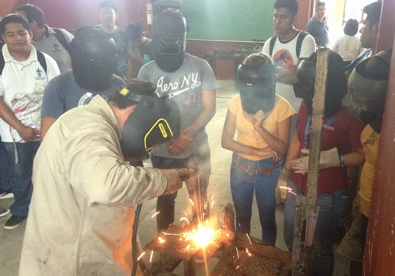 Los estudiantes recorrieron el taller de Soldadura donde el ingeniero responsable del área explicó a los jóvenes que la soldadura es un proceso de fijación utilizado en los talleres de estructura y tecnología mecánica, la cual se fundamenta en unir de manera sólida dos o más piezas metálicas o partes de una misma pieza.