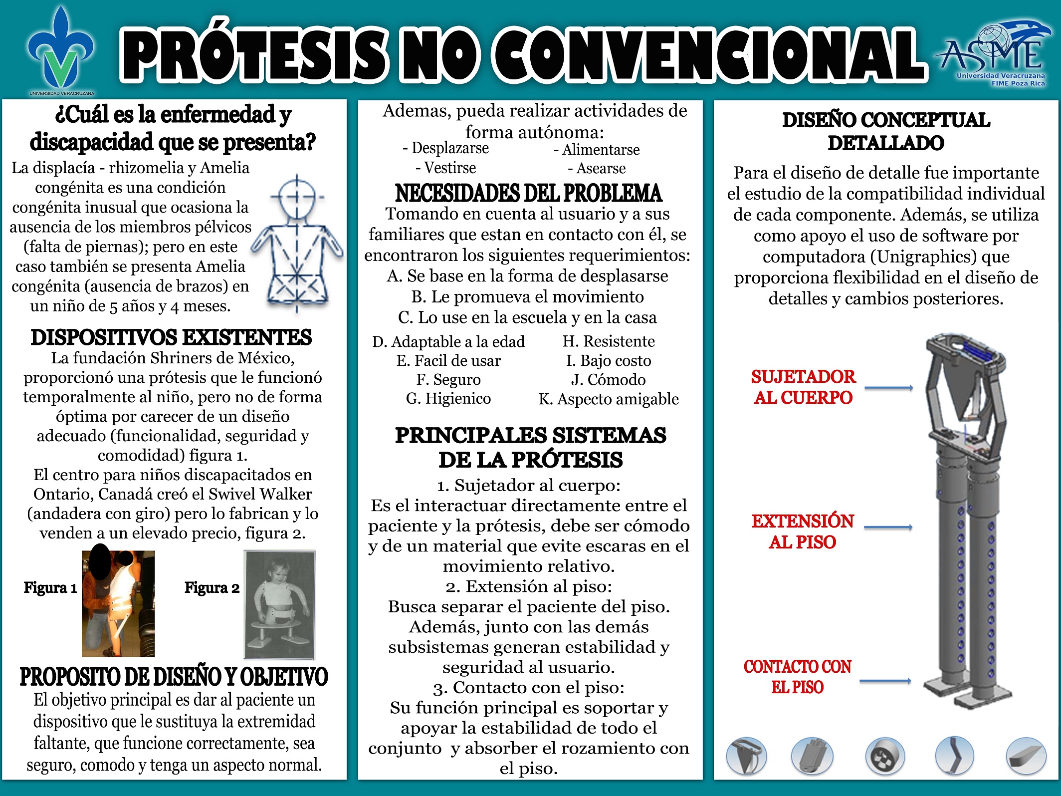 El proyecto presentado con éxito por los estudiantes “Prótesis no convencional” permitiría proporcionar a los pacientes un dispositivo seguro, cómodo y con aspecto normal que permitiría a una persona realizar actividades ordinarias como trabajar, desplazarse, asearse, vestirse y alimentarse entre otras actividades y de este modo tener una alternativa de solución a ser más independiente en su vida.