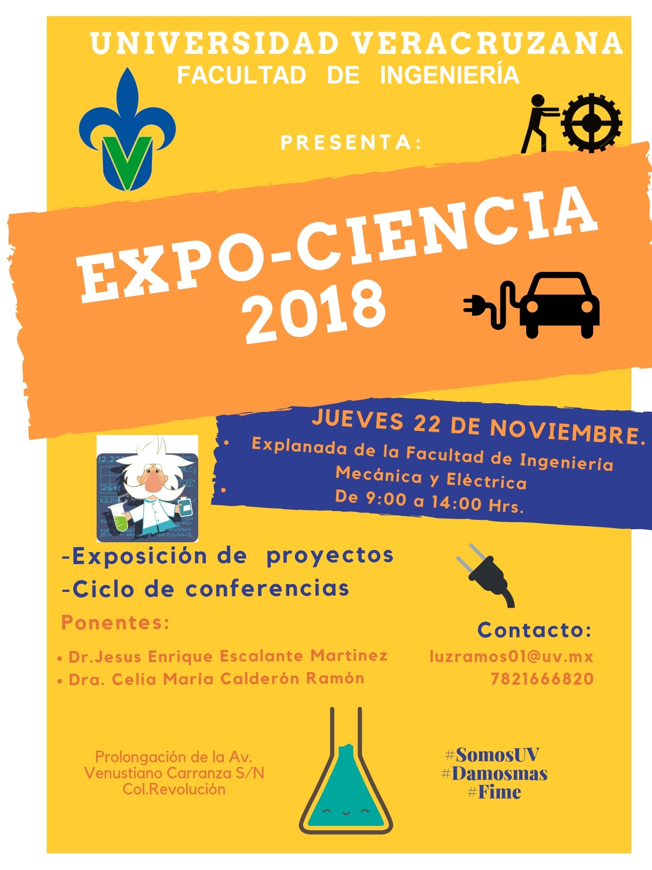 Expo-Ciencia 2018. La Facultad de Ingeniería Mecánica y Eléctrica del Campus Poza Rica invita a la comunidad universitaria a participar en la Expo-Ciencia 2018 el día 22 de Noviembre del 2018.