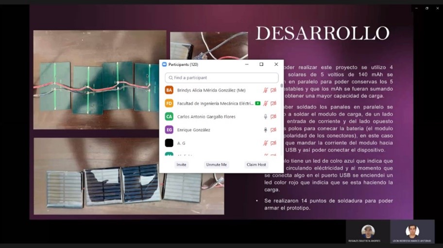 En esta labor participaron 75 estudiantes de los programas educativos de Ingeniería Mecánica Eléctrica (Ingeniería Industrial, Ingeniería Eléctrica, Ingeniería Mecánica), y cuarto semestre del PE de Ingeniería en Electrónica y Comunicaciones, quienes elaboraron 20 videos, se tuvo un resgistro promedio de asistencia de 141 estudiantes y maestros.