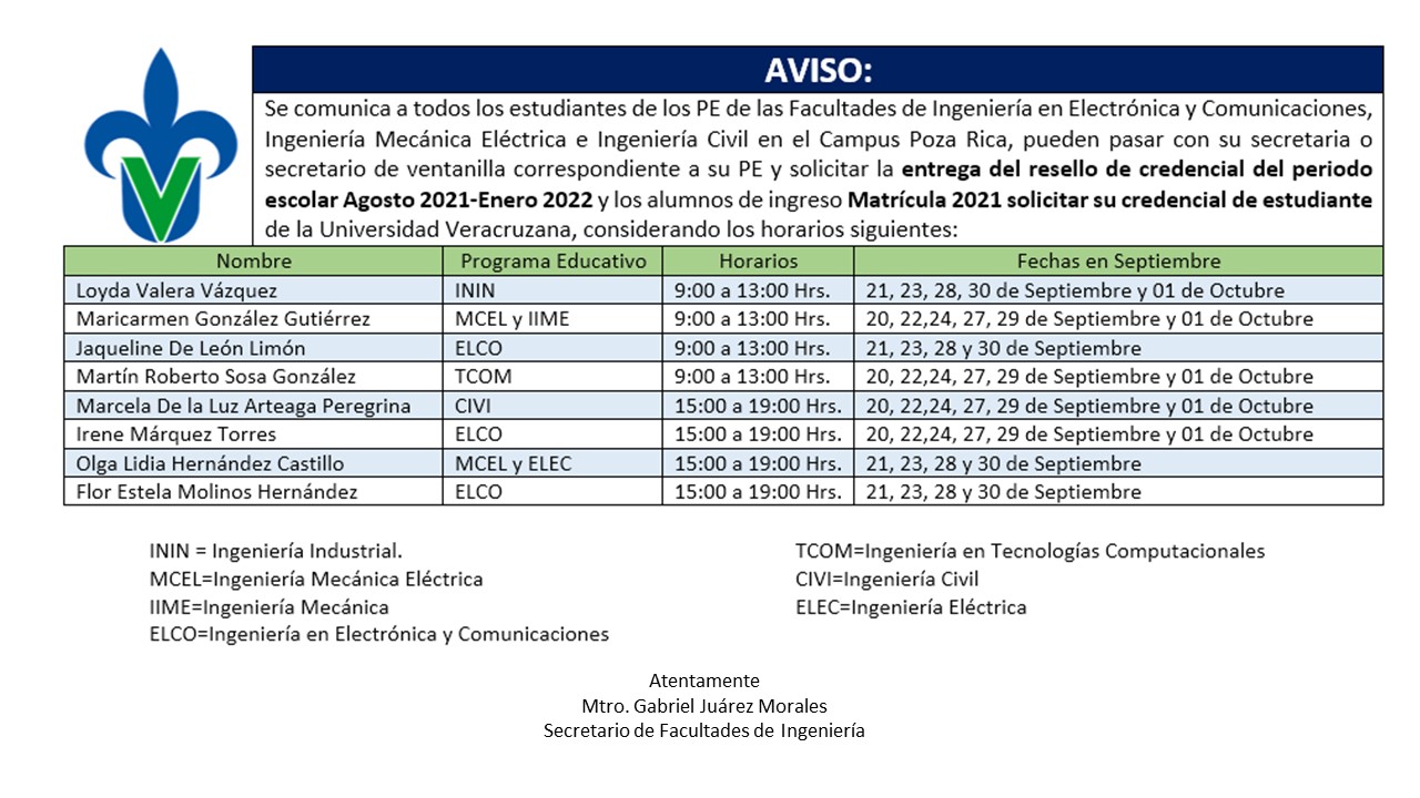 Facultades de Ingeniería: Entrega de resellos y credenciales UV.