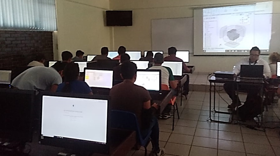 El Ing. Gómez Valdez mostró a los estudiantes la extensa gama de herramientas que posee este software y que en la actualidad se está convirtiendo en uno de los de mayor demanda en su aplicación dentro de la industria 4.0, ya que permite soportar y mejorar la fabricación, el desarrollo y diseño de productos con la ayuda de una computadora.