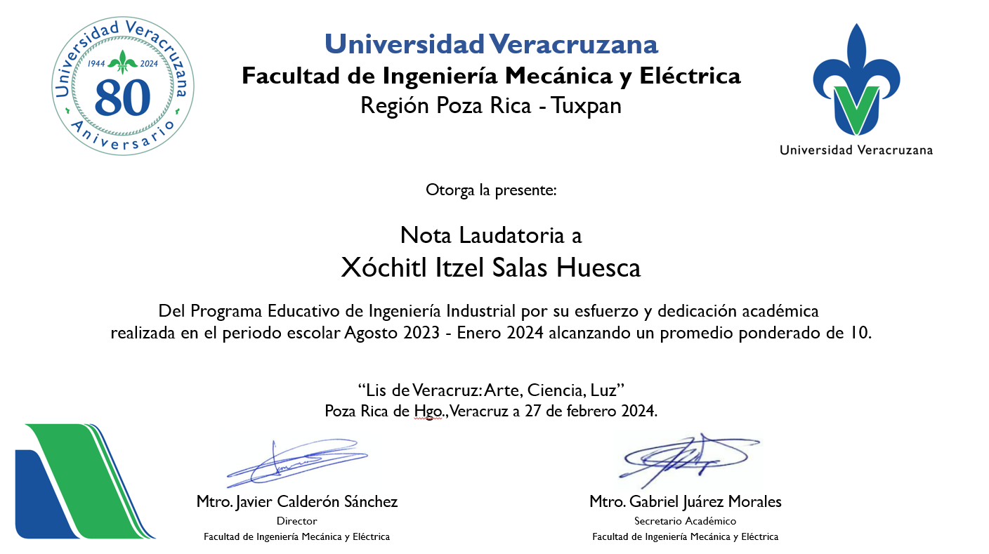 En toda Institución de Educación Superior, es fundamental reconocer el desempeño, las capacidades y las actitudes de los sobresalientes estudiantes, esto no solo refleja la calidad educativa recibida a través de diversas técnicas y metodologías de enseñanza-aprendizaje, sino que también demuestra el compromiso de la Facultad de Ingeniería Mecánica y Eléctrica de celebrar de manera sistemática, en cada periodo, a aquellos estudiantes que han logrado un alto aprovechamiento académico. Como resultado, se otorgan notas laudatorias para destacar y premiar su excelencia académica.