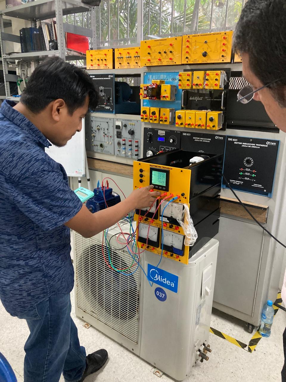 Es bien sabido que con el paso del tiempo la Infraestructura y Equipamiento de cualquier área de trabajo puede llegar a presentar deterioros, sin embargo, también se tiene conocimiento de las acciones que contribuyen a contrarrestar este tipo de efectos, un ejemplo claro son los mantenimientos preventivos y correctivos durante determinados lapsos los cuales coadyuvan a la conservación de los mismos o en su defecto mejoran el daño por completo; es por esto que en la Facultad de Ingeniería Mecánica y Eléctrica el día 09 de Mayo del 2025 se emprendieron estrategias de acción con la finalidad de mantener en óptimas condiciones la parte eléctrica de sus diferentes programas educativos, esto mediante el mantenimiento correctivo a módulos de capacitancias, transformadores, inductancias, wattmetros, voltímetros de CA, entre otros, los cuales son considerados como aditamentos fundamentales del banco de motores de la marca teleternik, este mantenimiento corrió a cargo de la empresa GAP Digital S.A. de C.V.