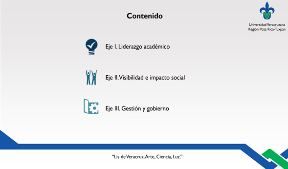 El 3er informe de actividades se sustenta en los ejes rectores del “Programa de Trabajo Estratégico 2017-2021” de la Universidad Veracruzana y de los cuales se tiene el siguiente extracto: