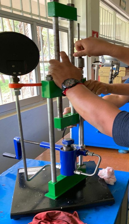 El mantenimiento realizado fue llevado a cabo de manera correctiva ya que presentaba fuga del líquido hidráulico utilizado por el mecanismo que eleva y reduce la distancia de la probeta, mismo que fue detectado de manera oportuna, identificando la ruptura de uno de los empaques que sellan y nivelan la cantidad de liquido para el correcto funcionamiento, es importante mencionar que los encargados de realizar el mantenimiento fueron el Dr. Jorge Alberto Chagoya Ramírez (Técnico Académico del Laboratorio de Mecánica y Eléctrica Vespertino), el Mtro. Cristóbal Cortez Domínguez (Docente del PE de Ingeniería Industria e Ingeniería Mecánica Eléctrica) y el estudiante de servicio social Francisco Castellanos Juárez del PE Ingeniería Mecánica Eléctrica.