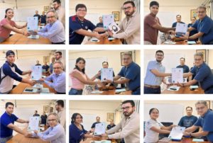 La celebración para premiar a los ganadores estuvo coordinada por el Dr. Jesús Enrique Escalante Martínez y la Dra. Avril González Sierra, contando también con la participación en el presídium del Dr. Armando Aguilar Meléndez Director de la Facultad de Ingeniería Civil, el Mtro. Javier Calderón Sánchez Director de la Facultad de Ingeniería Mecánica y Eléctrica y el Mtro. Gabriel Juárez Morales, Secretario Académico de las Facultades de Ingeniería, quienes tomaron la palabra y destacaron la importancia de reconocer el esfuerzo de los estudiantes participantes. Seguido de esto, se procedió a nombrar a los estudiantes para que pasaran a recibir sus premios que reconocen su destacada participación y obtención del logro.