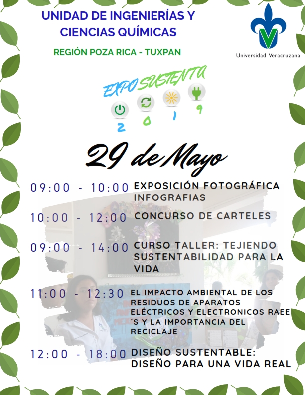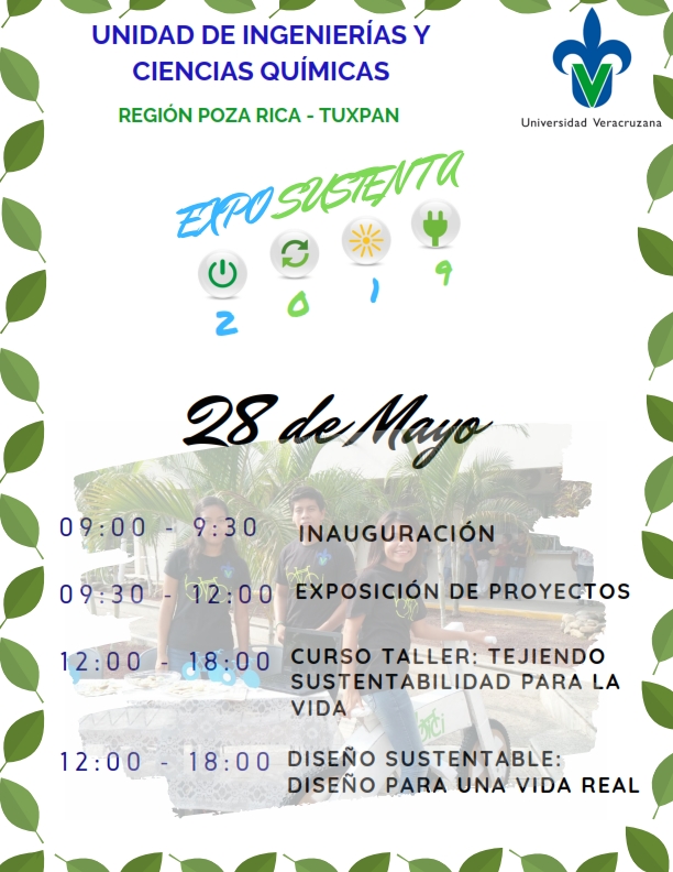 Unidad de Ingeniería y Ciencias Químicas Expo-Sustenta 2019 Inscripciones: https://docs.google.com/forms/d/e/1FAIpQLSdNEVjLyjK27VwJFcgaXU-_nowtZUpwTM0d0YxcUVii2TD_jw/viewform